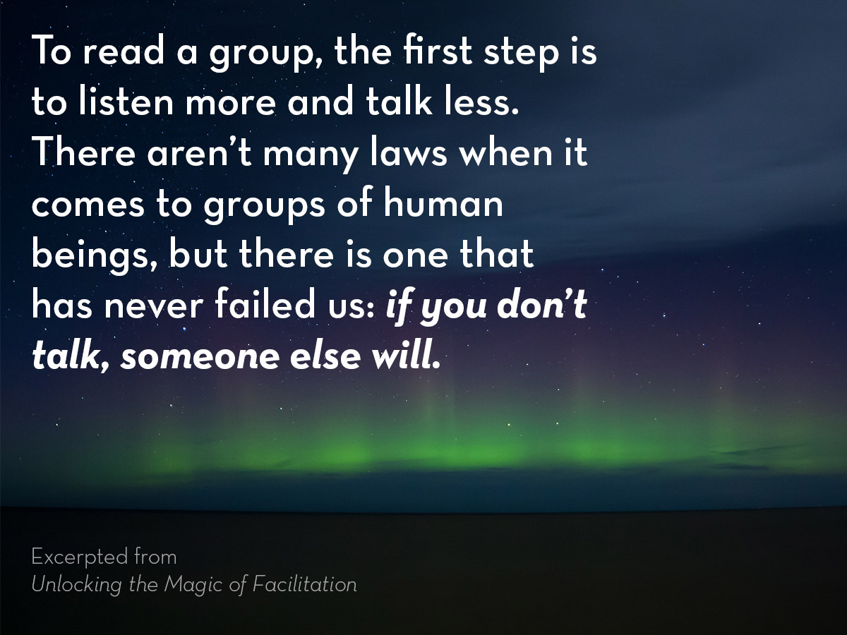 Level 1 – Do Nothing: Make a clear decision to take no action. Your non-action can raise the tension and discomfort level – this will often cause the group to take action. This allows the group to act independently and take ownership in handling its own dilemmas. Allows time for facilitator to “go to the balcony” and consider the next level of intervention.